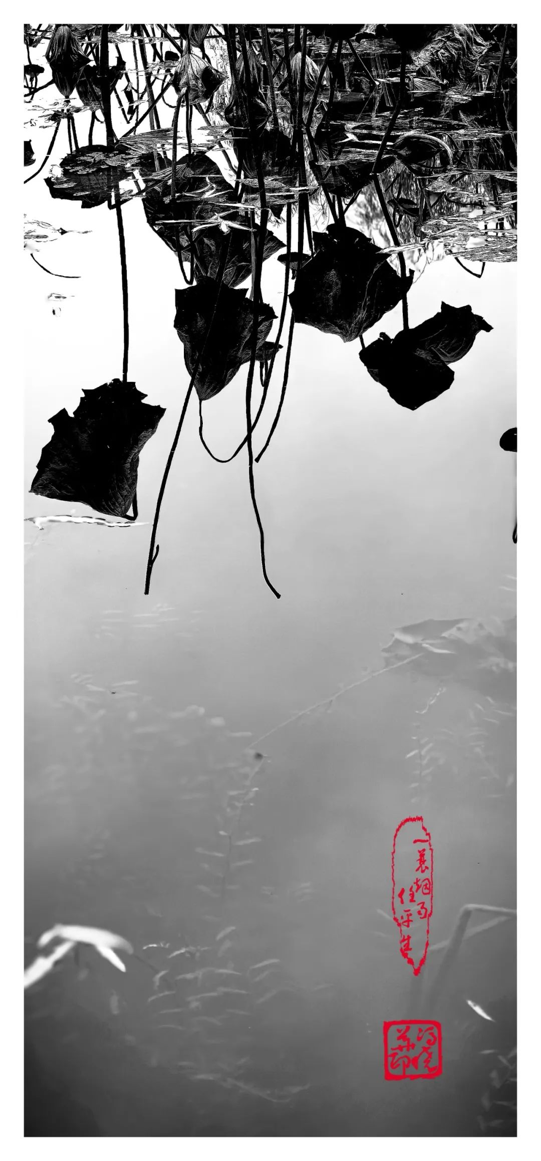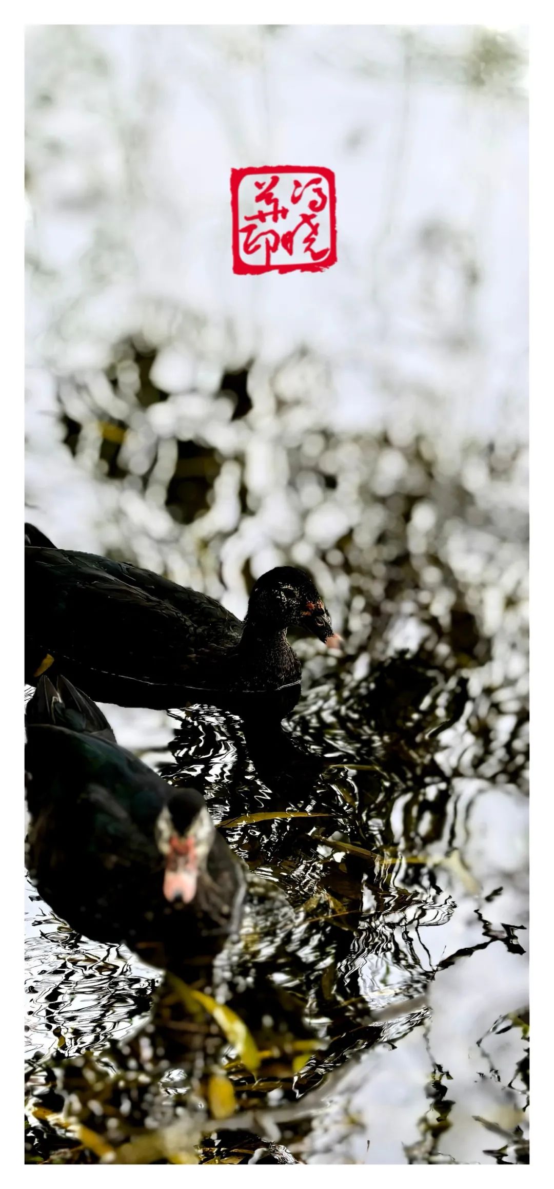 优雅的身姿与宁静的水面叠影在垂柳的包裹中