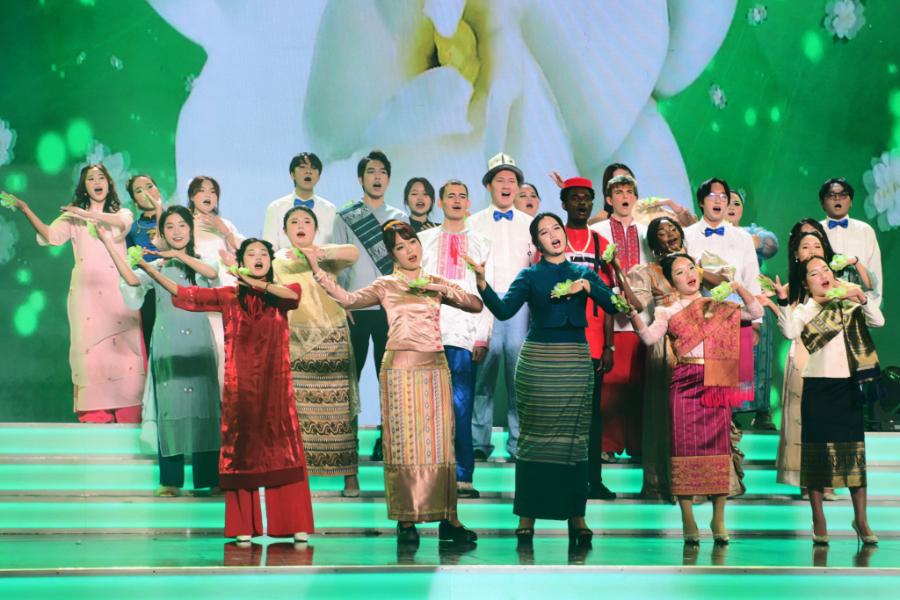 在第三篇章《筑梦·四海放歌》中,15vip太阳集团官网“和声国际”合唱团演唱了《茉莉花》,这支合唱团成立于今年10月,由12个国家的60余名中外学生组成;《“一带一路”·歌舞相和》舞蹈表演,讲述了36名留学生的故事;舞蹈《风·雅·韵》,通过艺术的形式,带领观众一同领略诗词歌赋里的国风雅致,品味中国文化的博大精深。